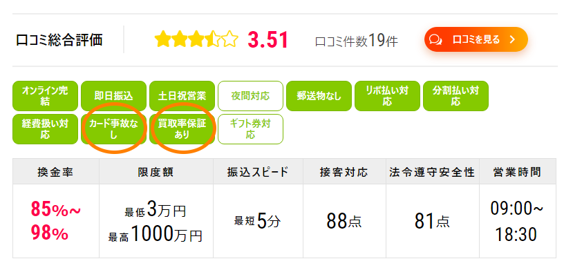 80%以上保証など安定した換金率を重視