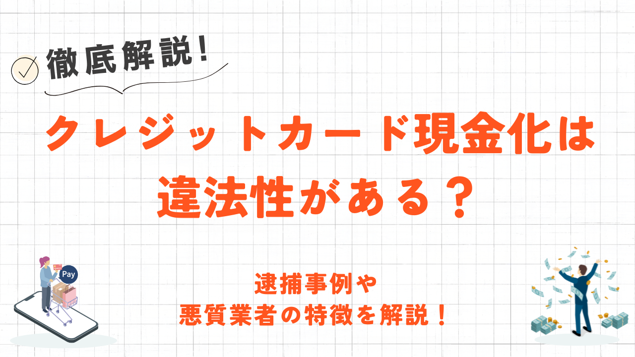 クレジットカード現金化は違法ではありませんが、カード会社の規約違反に該当するため、現金化がバレると強制解約や一括返済が求められるリスクがあります。